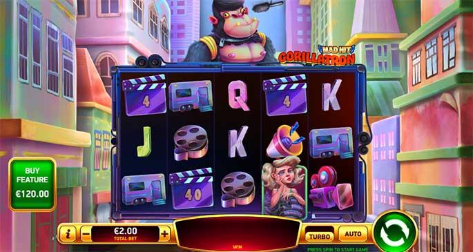 Điểm đặc biệt của Mad Hit GorillaTron là tính năng “Gorilla Wilds”, trong đó những con khỉ đột sẽ giúp tăng cơ hội chiến thắng bằng cách thay thế các biểu tượng khác.